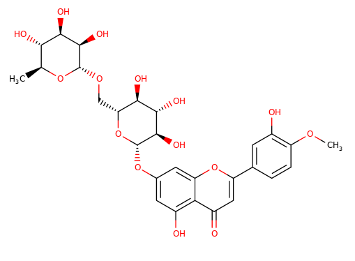 CAS Name: 7-[[6-O-(6-Deoxy-a-L-mannopyranosyl)-b-D-glucopyranosyl]oxy]-5-hydroxy-2-(3-hydroxy-4-methoxyphenyl)-4H-1-benzopyran-4-one
