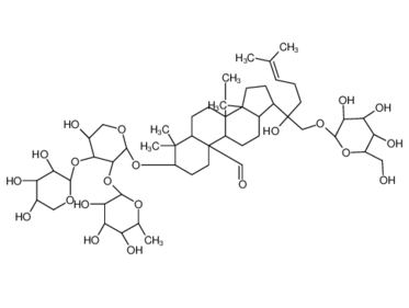 | IUPAC Name | (3S,5S,8R,9S,10S,13R,14R,17S)-17-[(2S)-2-hydroxy-6-methyl-1-[(2R,3R,4S,5S,6R)-3,4,5-trihydroxy-6-(hydroxymethyl)oxan-2-yl]oxyhept-5-en-2-yl]-3-[(2S,3R,4S,5S)-5-hydroxy-3-[(2S,3R,4R,5R,6S)-3,4,5-trihydroxy-6-methyloxan-2-yl]oxy-4-[(2S,3R,4S,5R)-3,4,5-trihydroxyoxan-2-yl]oxyoxan-2-yl]oxy-4,4,8,14-tetramethyl-2,3,5,6,7,9,11,12,13,15,16,17-dodecahydro-1H-cyclopenta[a]phenanthrene-10-carbaldehyde |