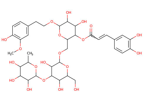 | SMILES | CC1C(C(C(C(O1)OC2C(C(OC(C2OC(=O)C=CC3=CC(=C(C=C3)O)O)COC4C(C(C(C(O4)CO)O)O)O)OCCC5=CC(=C(C=C5)O)OC)O)O)O)O |